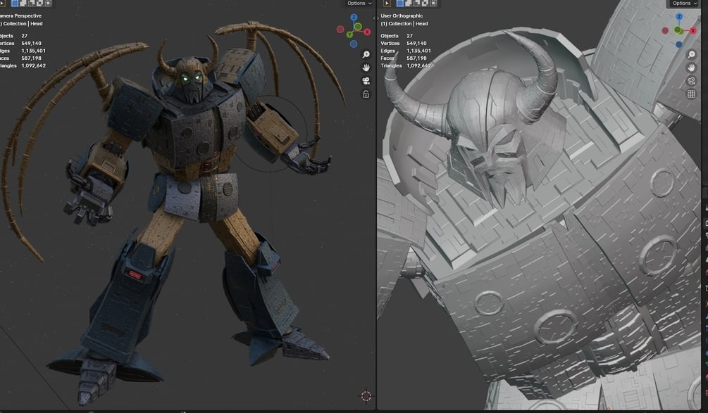 Here is a fully rigged, transformable Unicron model, design inspired by G1 but with a stylization. This model is for Blender 4.0+, specifically Blender 4.1
